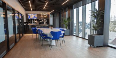 De Loft beschikt over een eigen toilet, een bar met koeling en een koffiezetapparaat, en biedt het mooiste uitzicht op de Tuinkamer. De vele ramen en doorkijkjes creëren een open, maar intieme sfeer, terwijl thermisch glas zorgt voor optimaal comfort en minimale geluidsoverlast. Zo is de Loft de perfecte locatie voor besloten zakelijke bijeenkomsten, VIP-events en exclusieve netwerkgelegenheden.